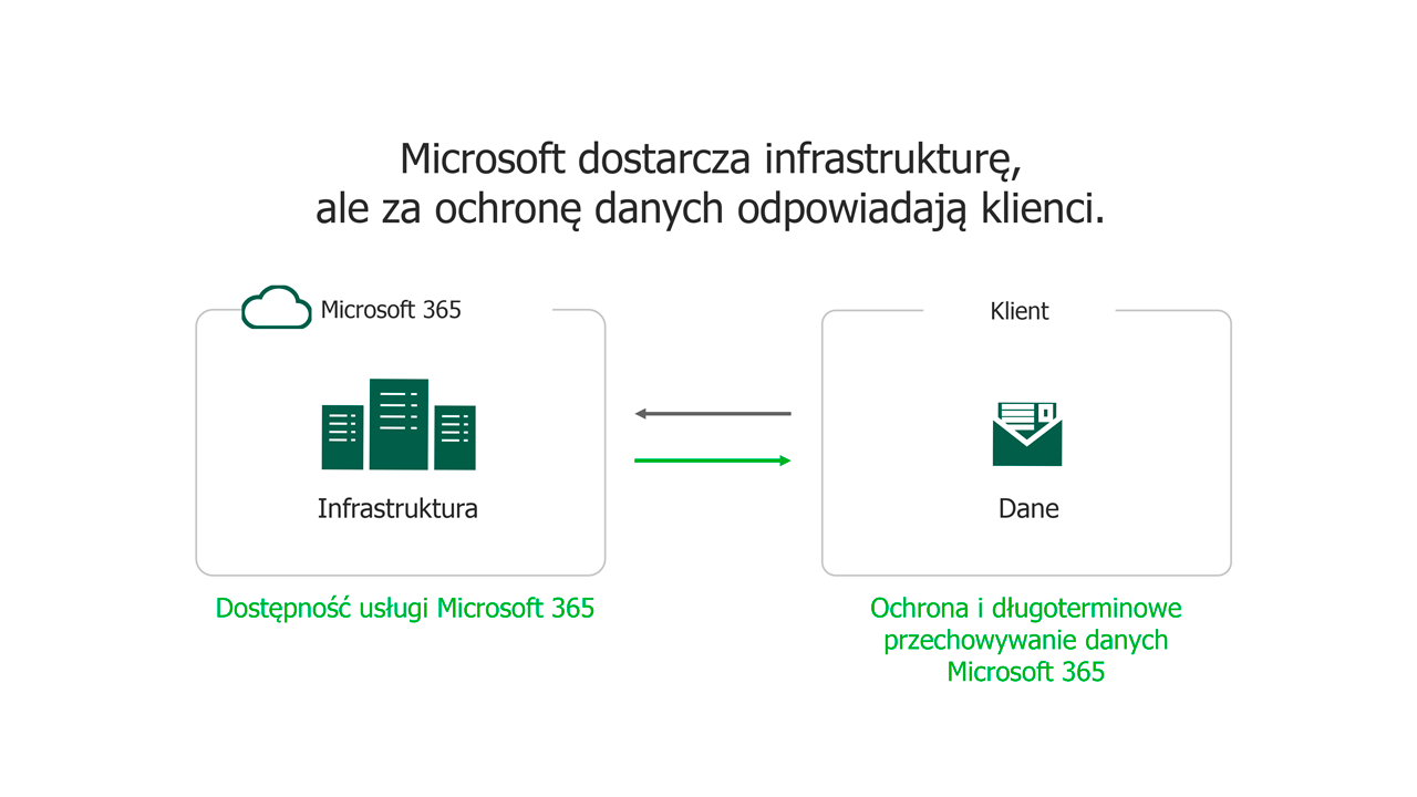 Musisz jednak pamiętać, że choć Microsoft 365 oferuje narzędzia do zarządzania danymi, takie jak historia wersji czy kosz, nie zapewnia pełnego rozwiązania do backupu danych. Microsoft gwarantuje dostępność i replikację danych w ramach swoich usług chmurowych, ale nie bierze na siebie odpowiedzialności za backup danych. Odpowiedzialność za ochronę danych leży po Twojej stronie. To Ty musisz zadbać o to, by dane były chronione także w przypadku awarii, ataków cybernetycznych czy błędów ludzkich.